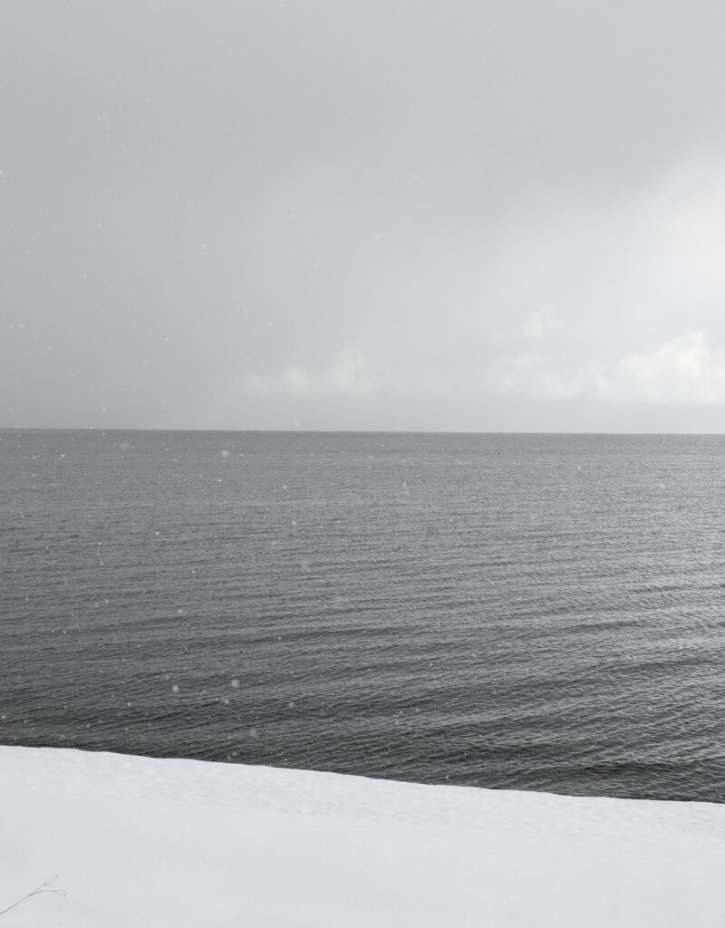 湖の景色は冬らしく静かで、空と水の色がとてもきれいでした。