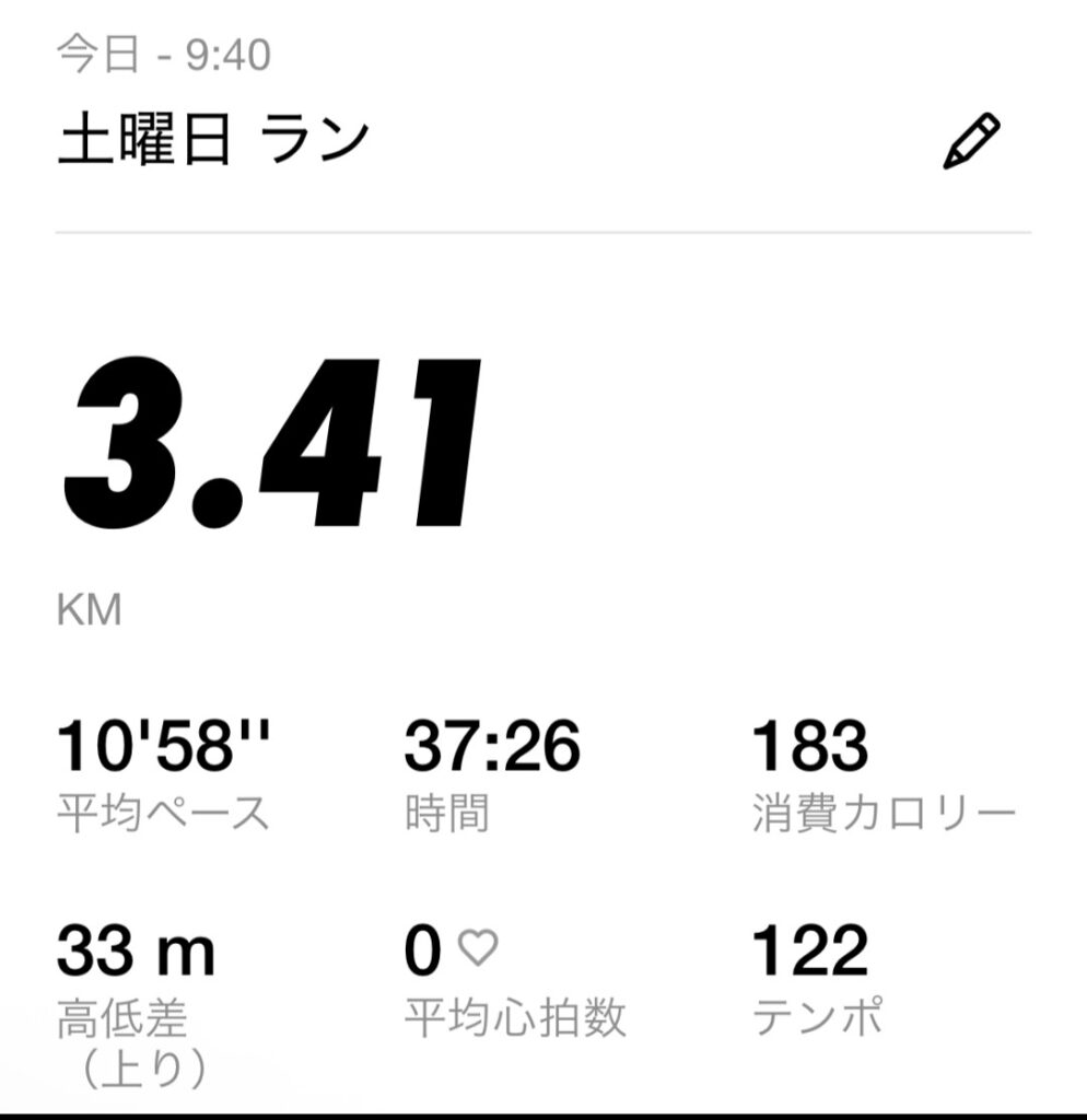 今日はまず3km走り、そのあと1kmは息を整えるためにゆっくり歩きました。