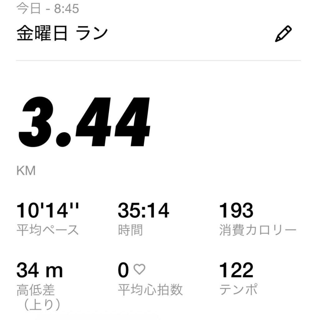 今日は3km走って、1kmは息を整えるためにゆっくり歩きました。