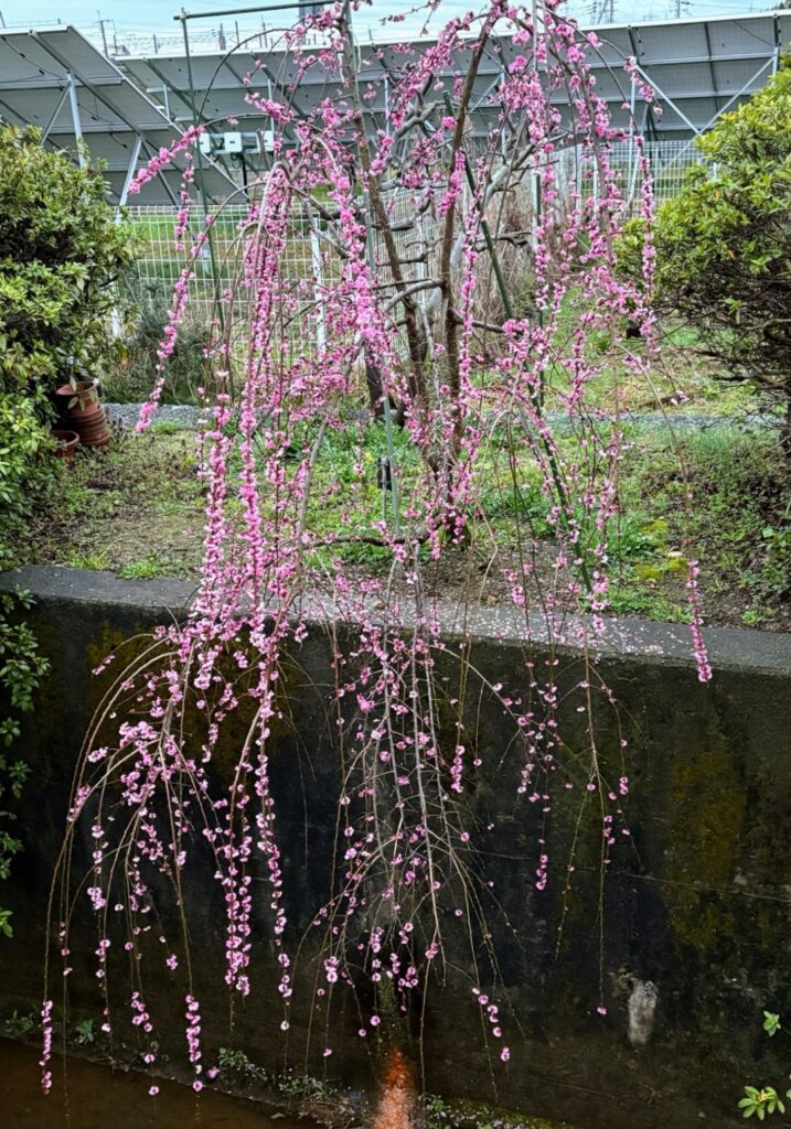 歩いている途中で、きれいな枝垂れ梅(しだれ梅)を発見。