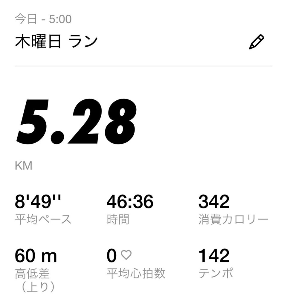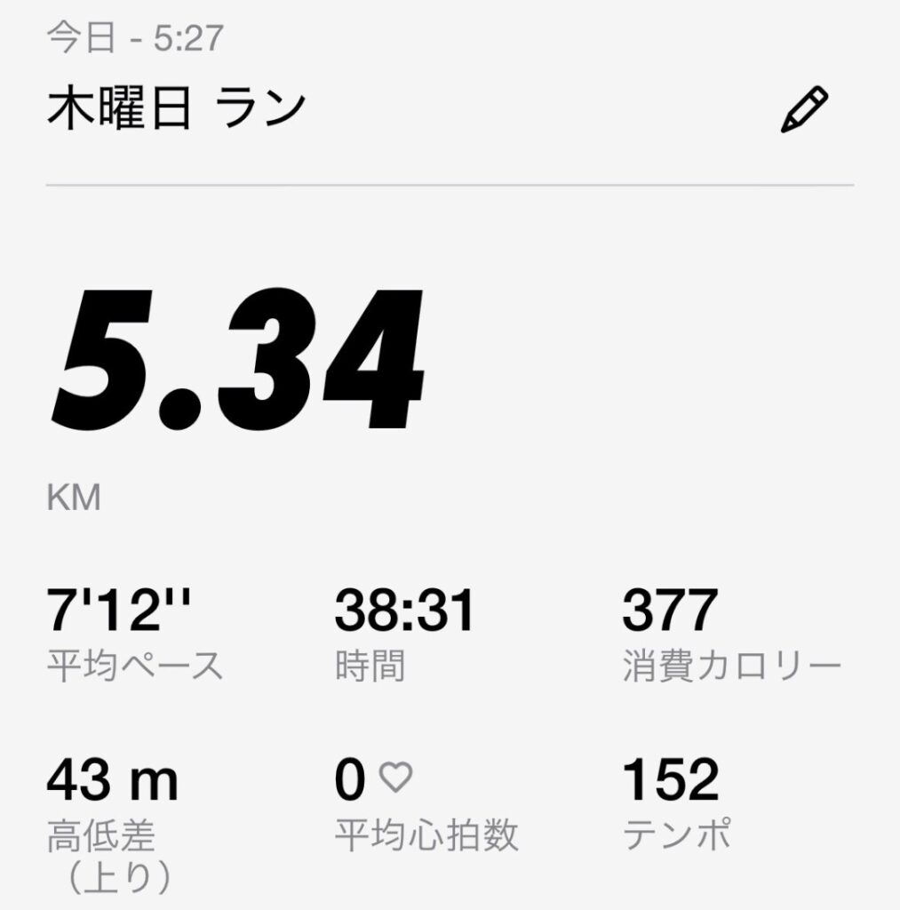 3km走って、そのあとは2kmを歩いて呼吸を整えました。