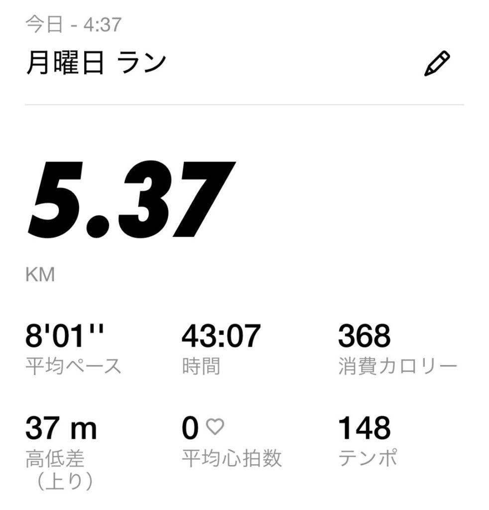 今日は4km走って、1kmは歩き。