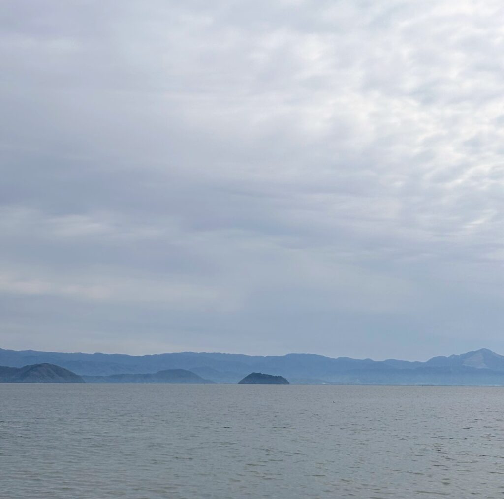 少し暖かさを感じる朝でしたが、風が強くてびわ湖は少し荒れた様子でした。