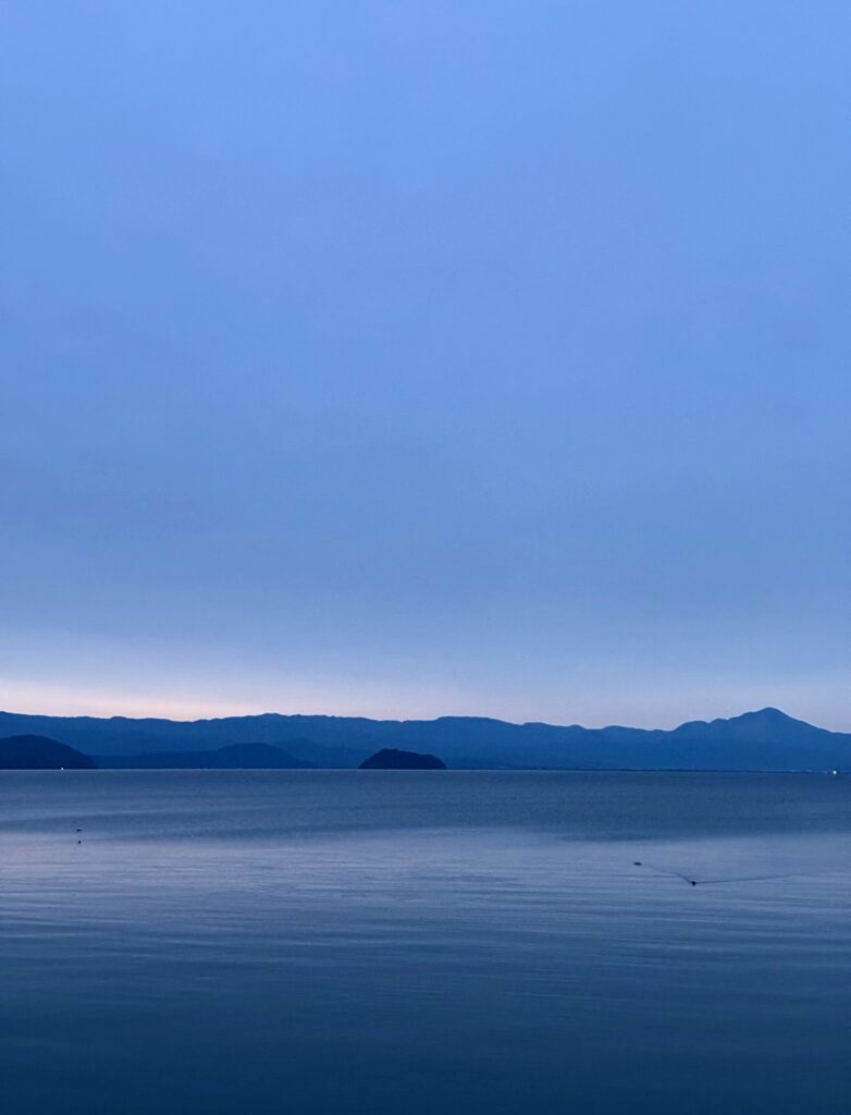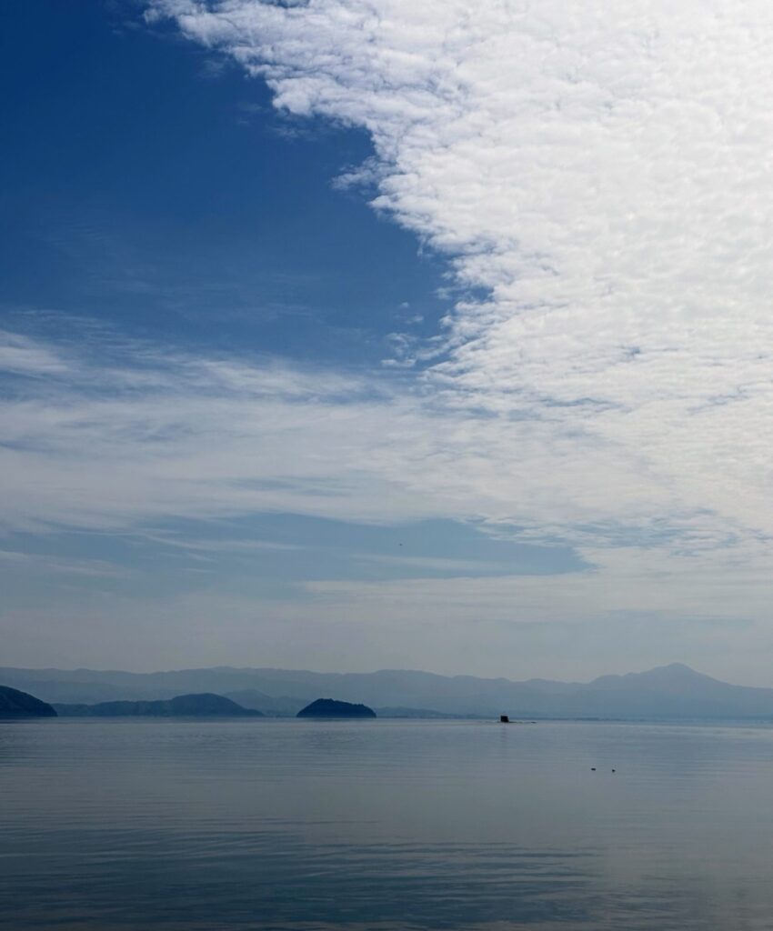 びわ湖はとても穏やかで、広がる空と静かな水面を眺めているだけで心が落ち着きます。