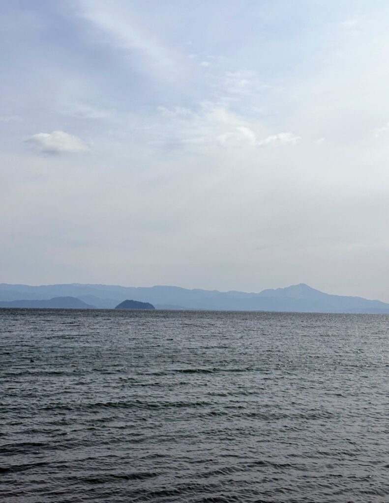 びわ湖の湖面には波が立ち、いつもより少し力強い景色。