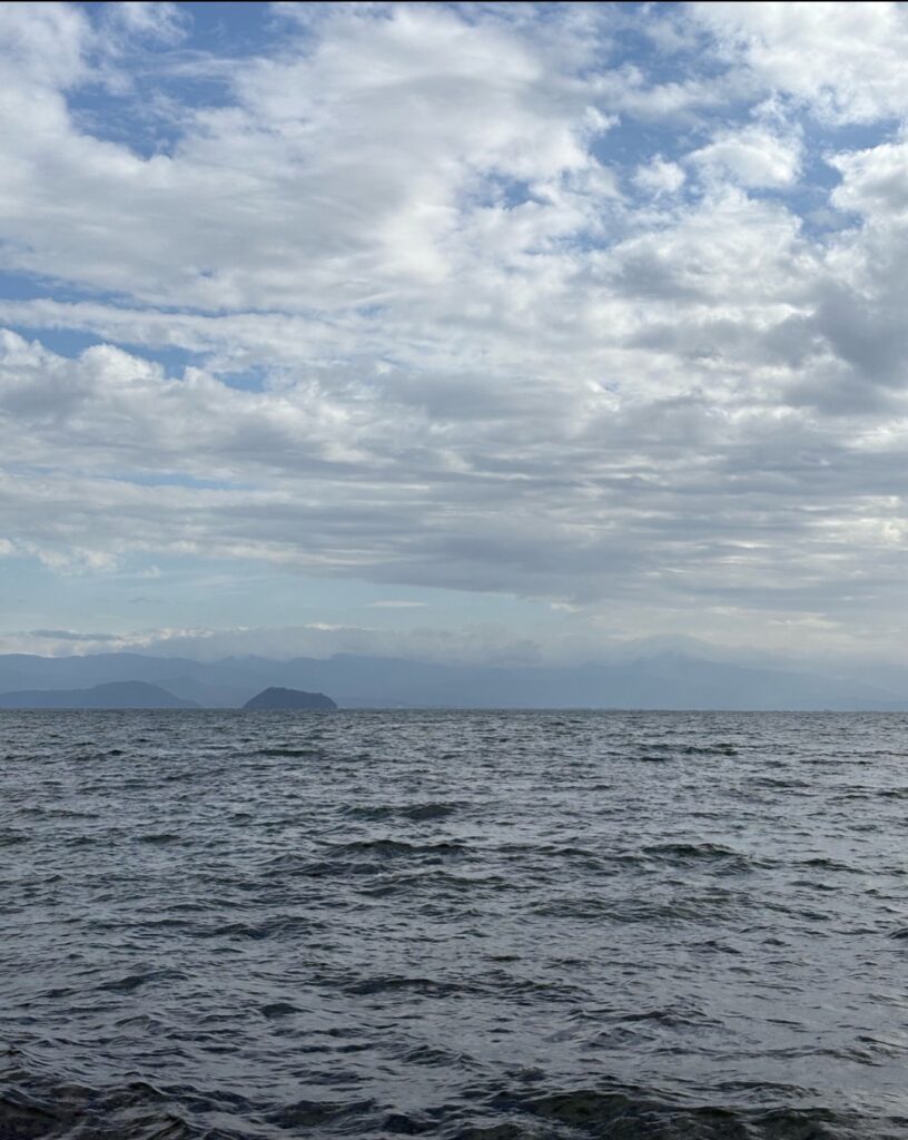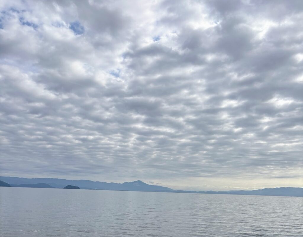 今朝の琵琶湖は、空一面に雲が広がっていました。