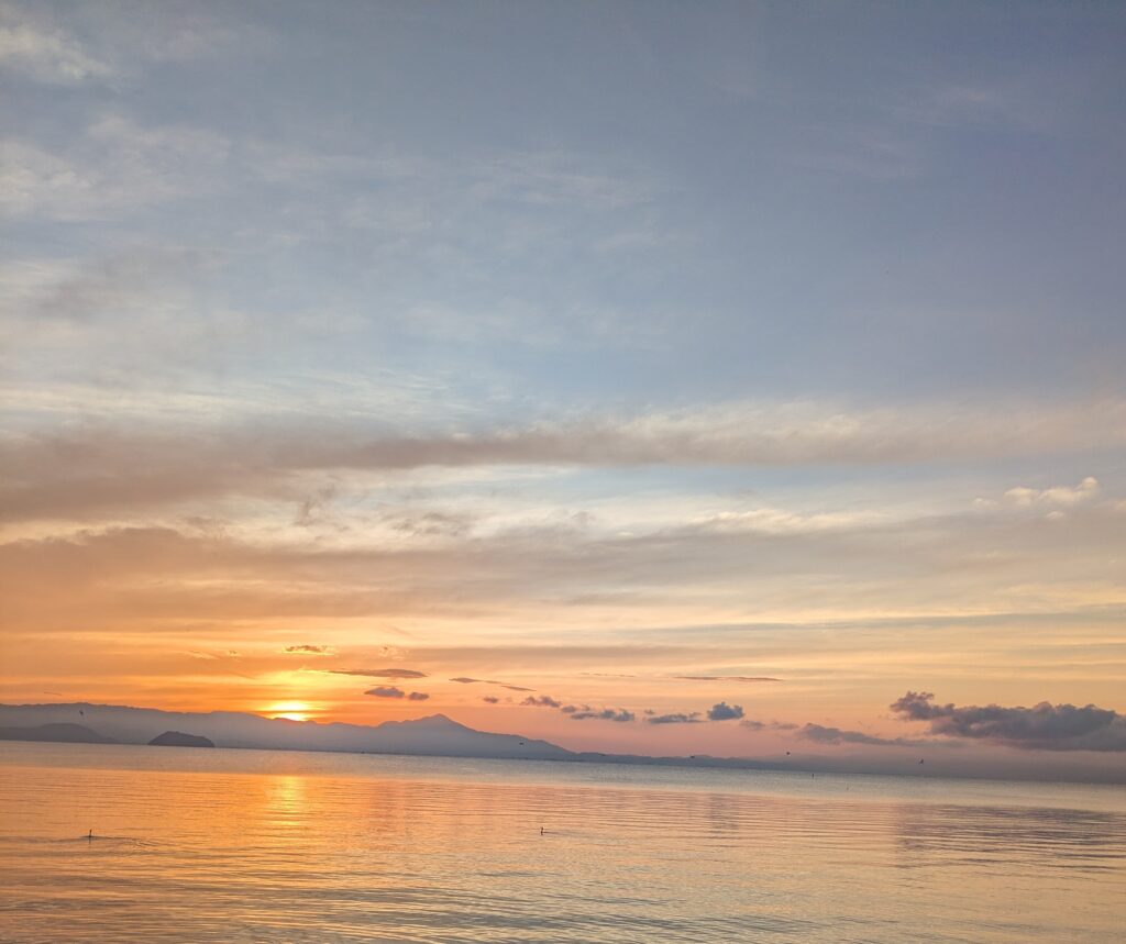 ちょうど空がほんのり色づいて、朝焼けがとてもきれいでした🌄